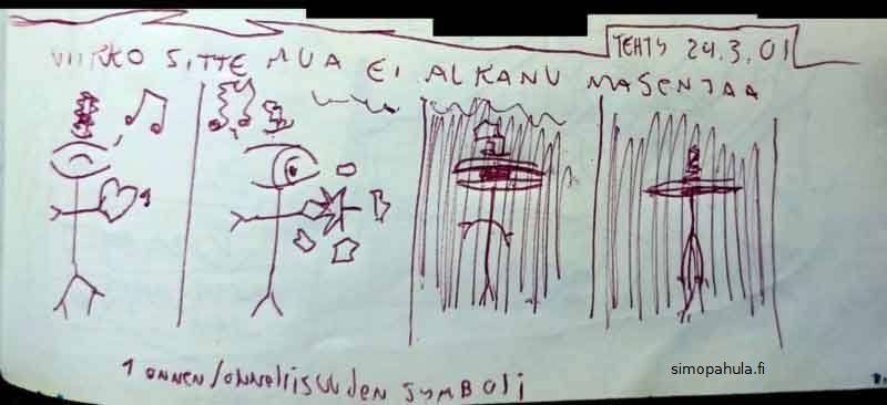 Jep. Pikainen elämänkertauskin. Pääni sisällä ei ollut tuolloin 20 vuotta sitten hyvä olla, mutta aikaa on kulunut. Eihän pääni sisällä aina hyvä ole olla, mutta tosiaan - mitä tässä jo tähdennin. Se tekee minusta minut.