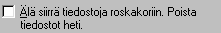 asettaa yhteen paikkaan valintamerkki, vaikka kaverin koneella: löytyy roskiksen