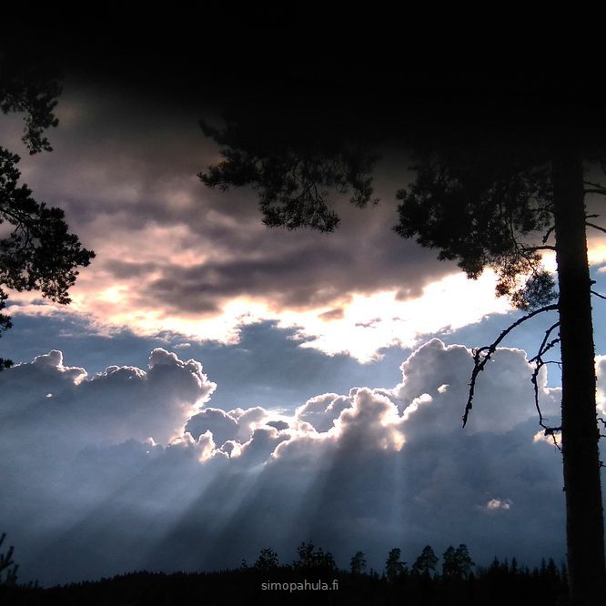 Taivas teki eräänä iltana mahtavasti ja sain siitä valokuvankin. Iltaruskotus kuvassa kulmasta kulmaan. Toinen tässä päivityksessä oleva kuva on päivältä, jolloin isän kuolemasta tuli täyteen 3 ja puoli vuotta. Pilvet tekivät kuten ikkunan taivaaseen.